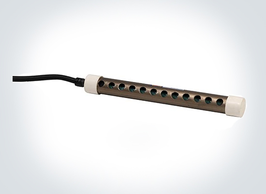 Eltech 302 Round Type Bar is specially design for textile application. It emitter pins are inside the bar which is safe for textile application and operator. It generates positive and negative ion on emitter by AC high voltage and transfer the ion by pressed air to the object surface to be static removed. Thus neutralize the ion on the object surface and eliminate static efficiently and reliably.