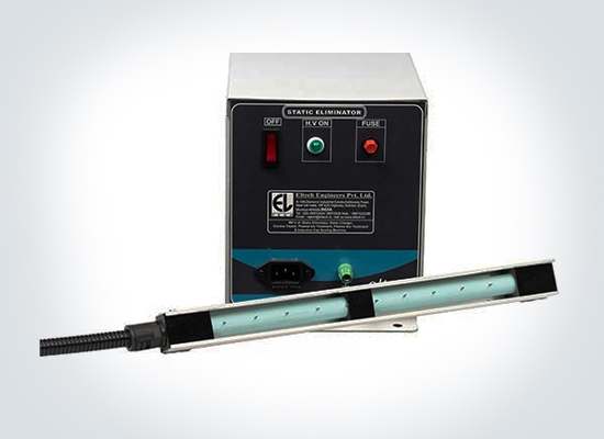 Eltech SSPL Bar is design to prevent the soft object from emitter pins of bar and also operator. It mainly use in textile application and many other application also. It generates positive and negative ion on emitter by AC high voltage and transfer the ion by pressed air to the object surface to be static removed. Thus neutralize the ion on the object surface and eliminate static efficiently and reliably.